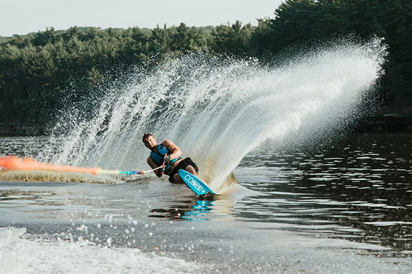 El esquí acuático es un deporte acuático emocionante y desafiante en el que los participantes son remolcados por una lancha a través del agua mientras se deslizan sobre esquís. El esquiador sujeta una cuerda conectada a la lancha y utiliza los esquís para mantener el equilibrio y realizar maniobras sobre la superficie del agua.