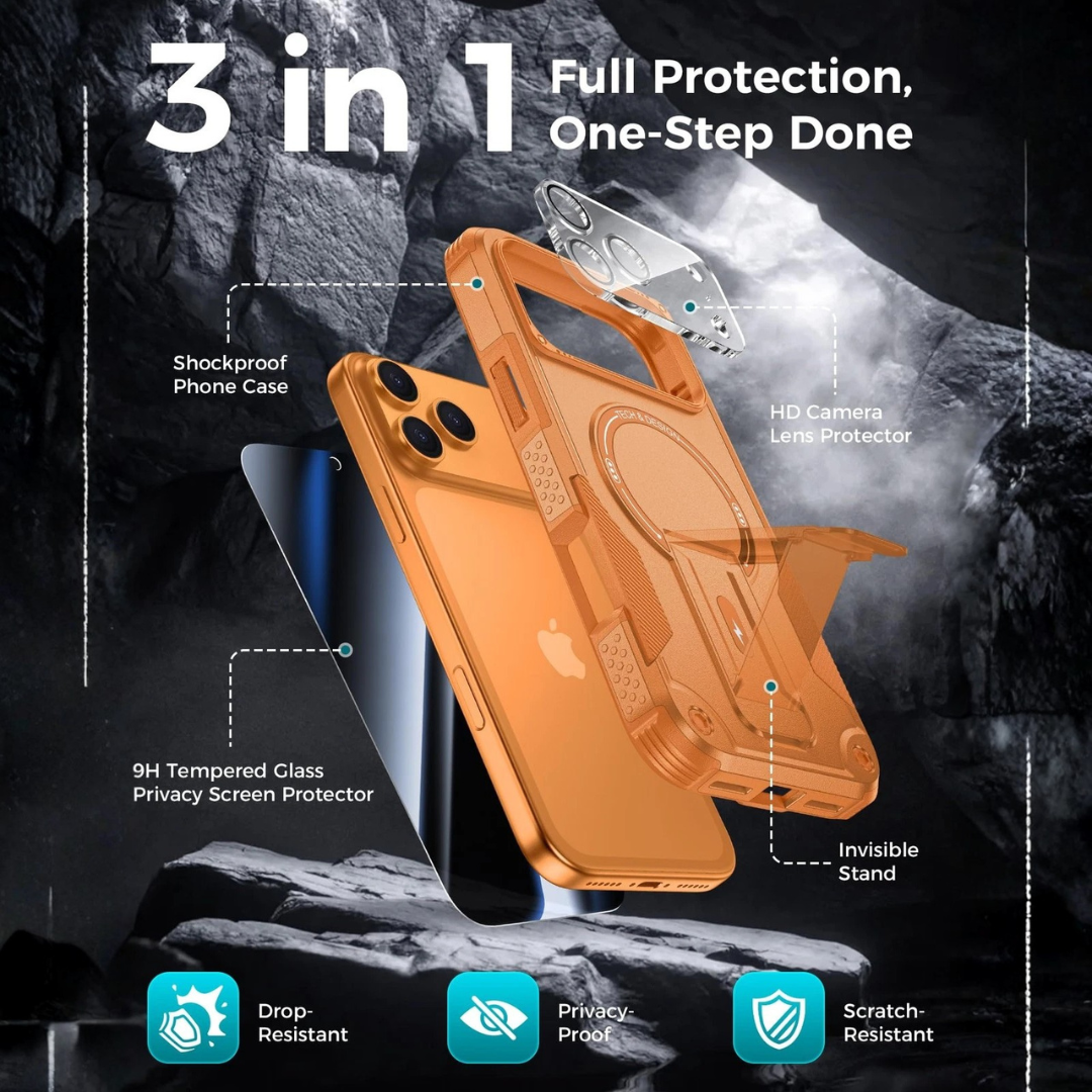 Protección integral 3 en 1 para iPhone 17 Pro Max: Incluye un protector de pantalla frontal anti-mirones de 26 grados, un protector de lente de cámara transparente de alta definición y una funda rígida de PC para iPhone 17 Pro Max, que ofrece protección completa de 360 grados. Ideal para quienes siempre están en movimiento y necesitan proteger su teléfono de arañazos, polvo y caídas durante las actividades diarias, como desplazamientos, viajes o deportes.